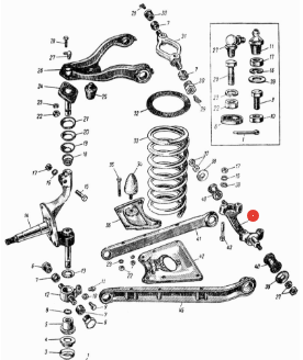 Ось нижних рычагов передней подвески.