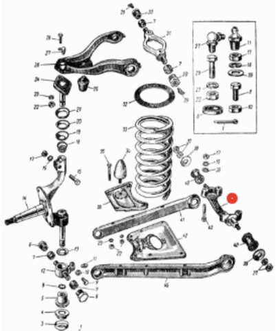 Ось нижних рычагов передней подвески Москвич 402, 407. Новая, с хранения.